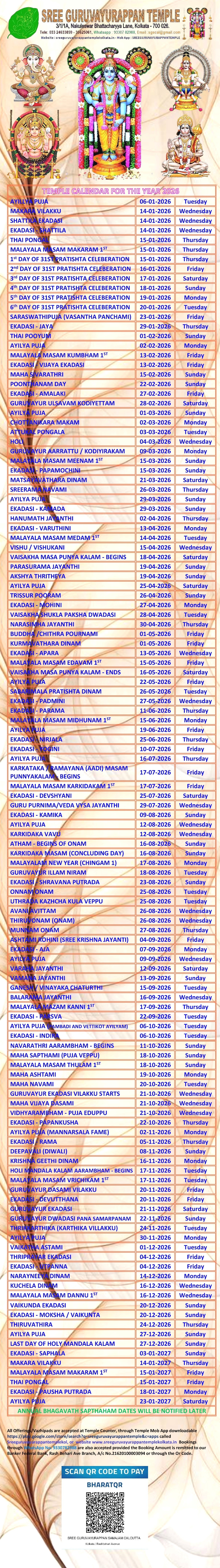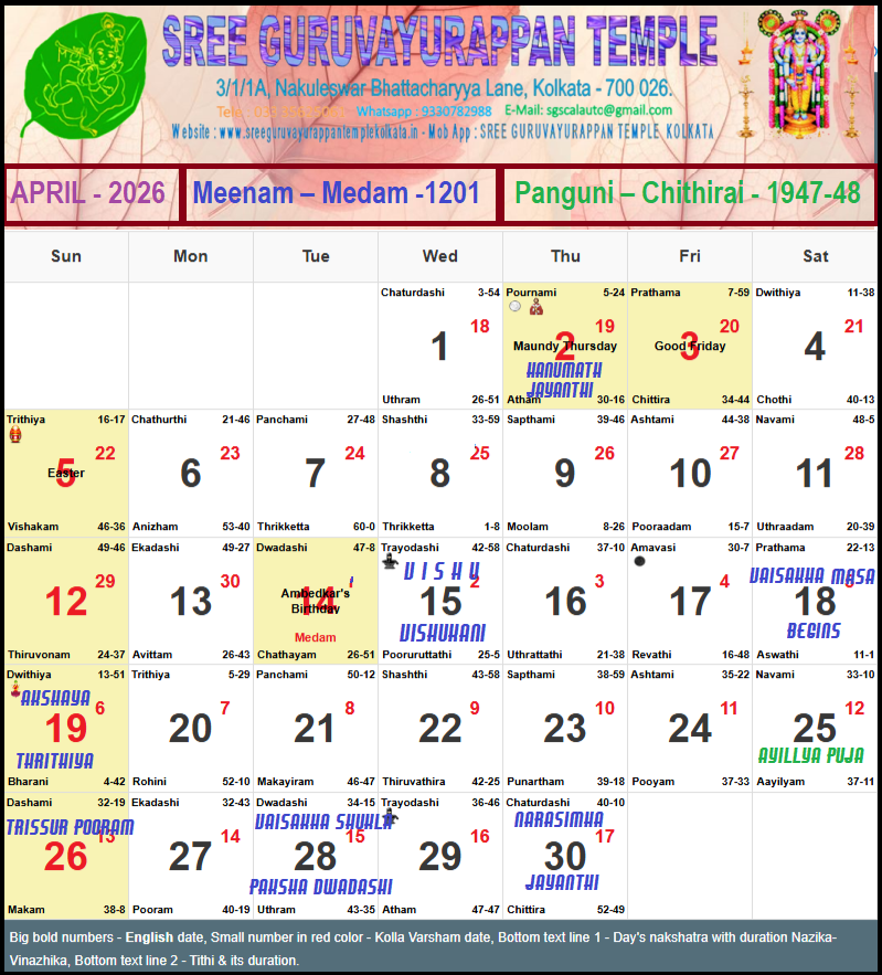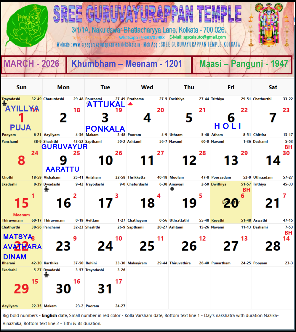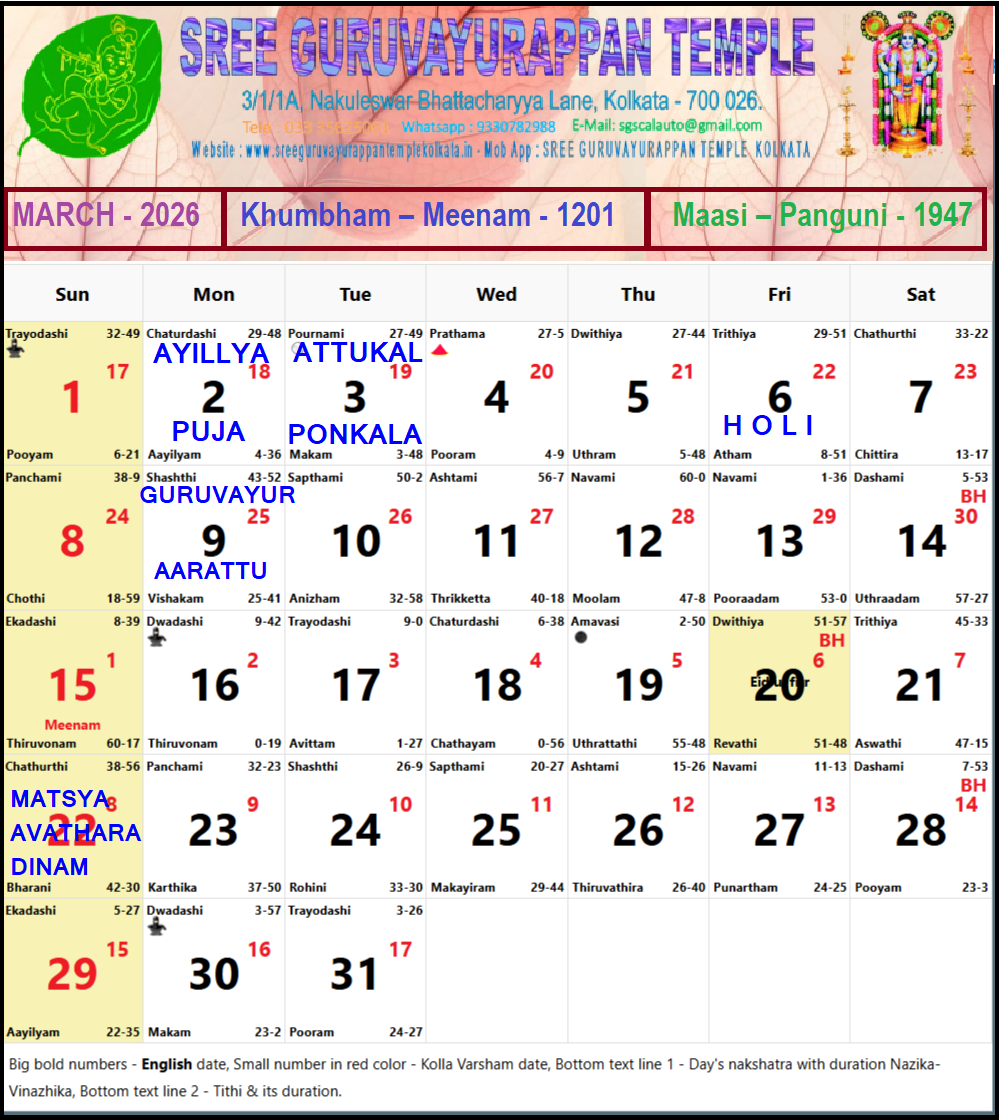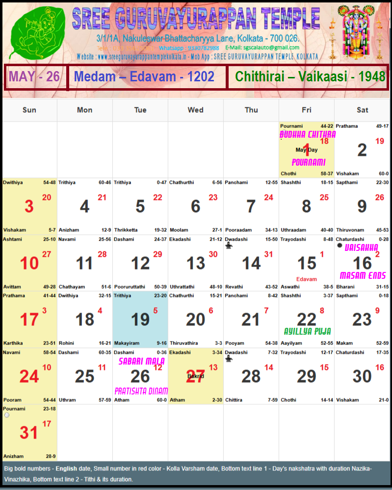 Temple Calendar